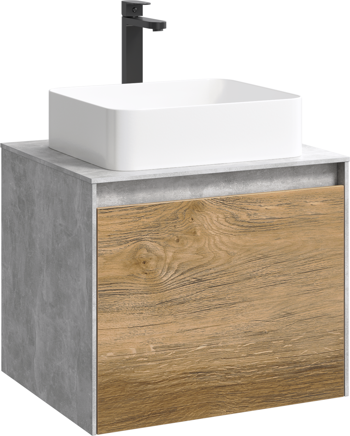 Подвесная тумба 60 см с двумя ящиками: основной и внутренний, скрытый за фасадом. Цвет бетон светлый/дуб балтийский,