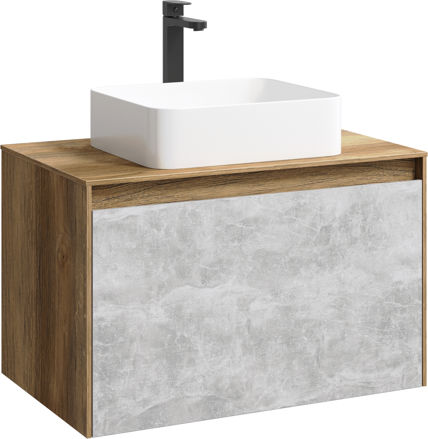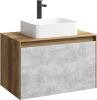 Подвесная тумба 80 см с двумя ящиками: основной и внутренний, скрытый за фасадом. Цвет дуб балтийский/бетон светлый.